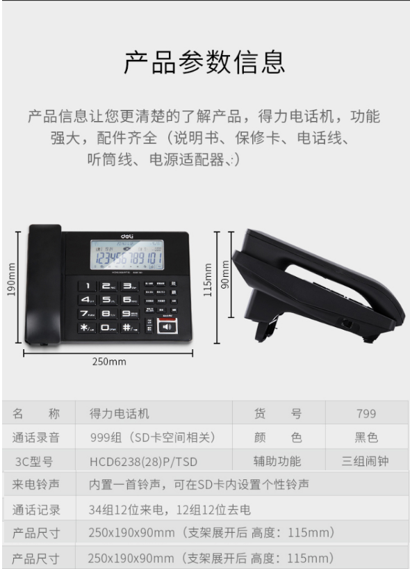 得力(deli)電話機座機固...
