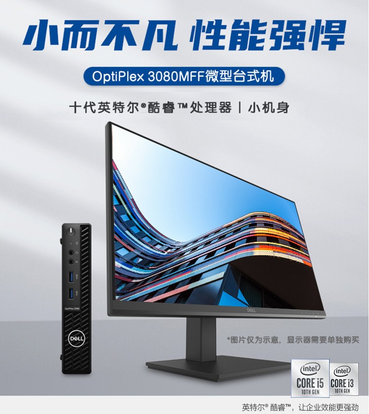 商品名稱:戴爾(DELL)OptiPlex 3080MFF微型臺(tái)式機(jī)電腦i3-10100T/8G/1T+128G