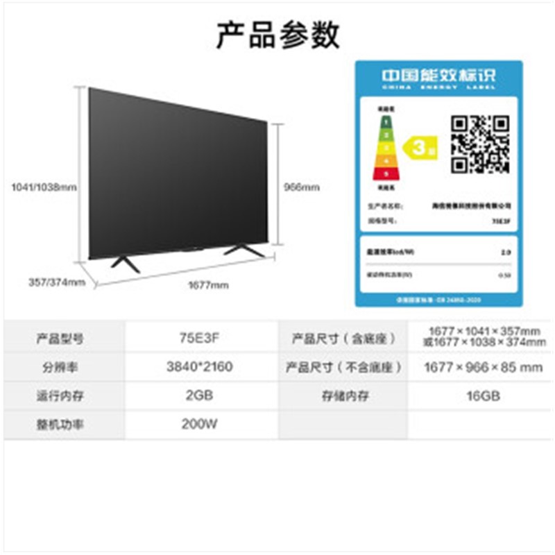 商品名稱:海信(Hisense)普通電視設(shè)備(電視機(jī))75E3F 75英寸 4K HDR 超薄全面懸浮屏智能電視 AI聲控 MEMC防抖 平板電視機(jī)