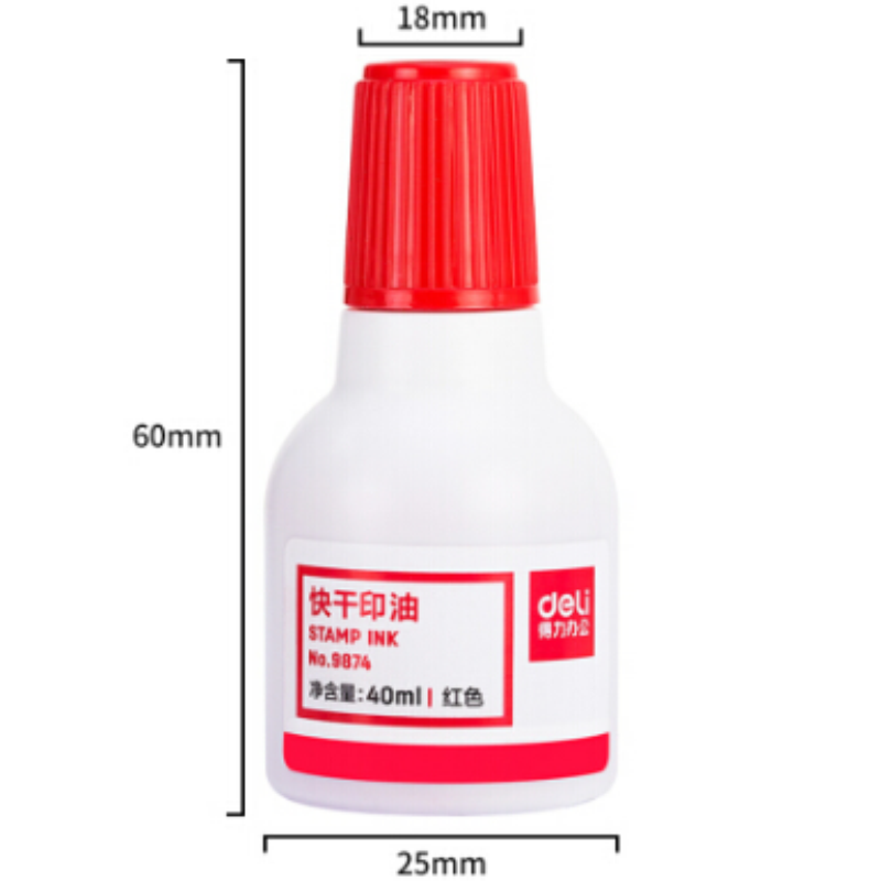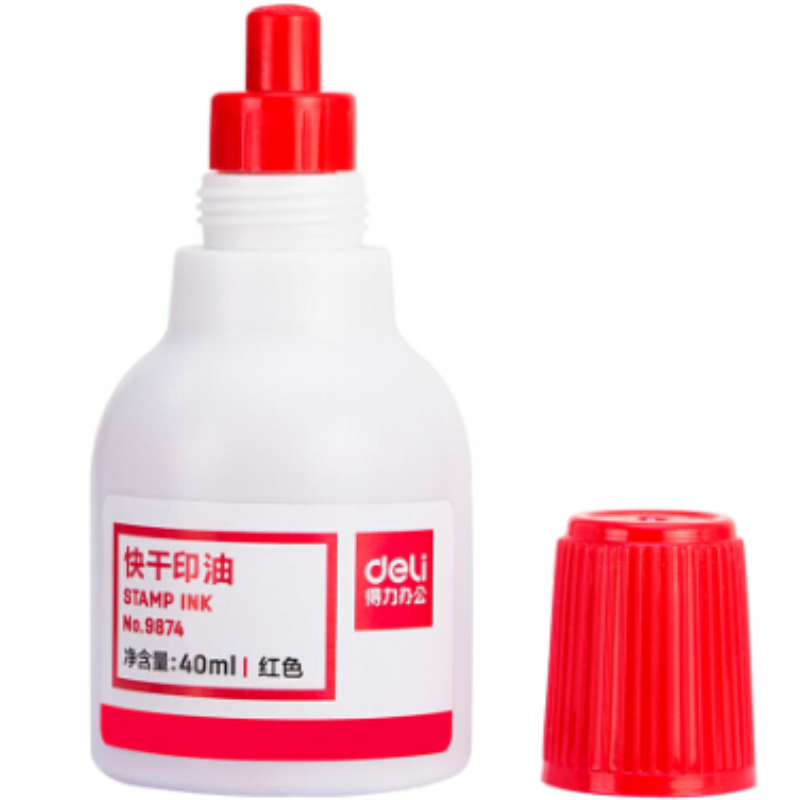 商品名稱(chēng):得力(deli)40ml財(cái)務(wù)印章快干清潔印油印泥 辦公用品 得力(deli)印油9874紅色
